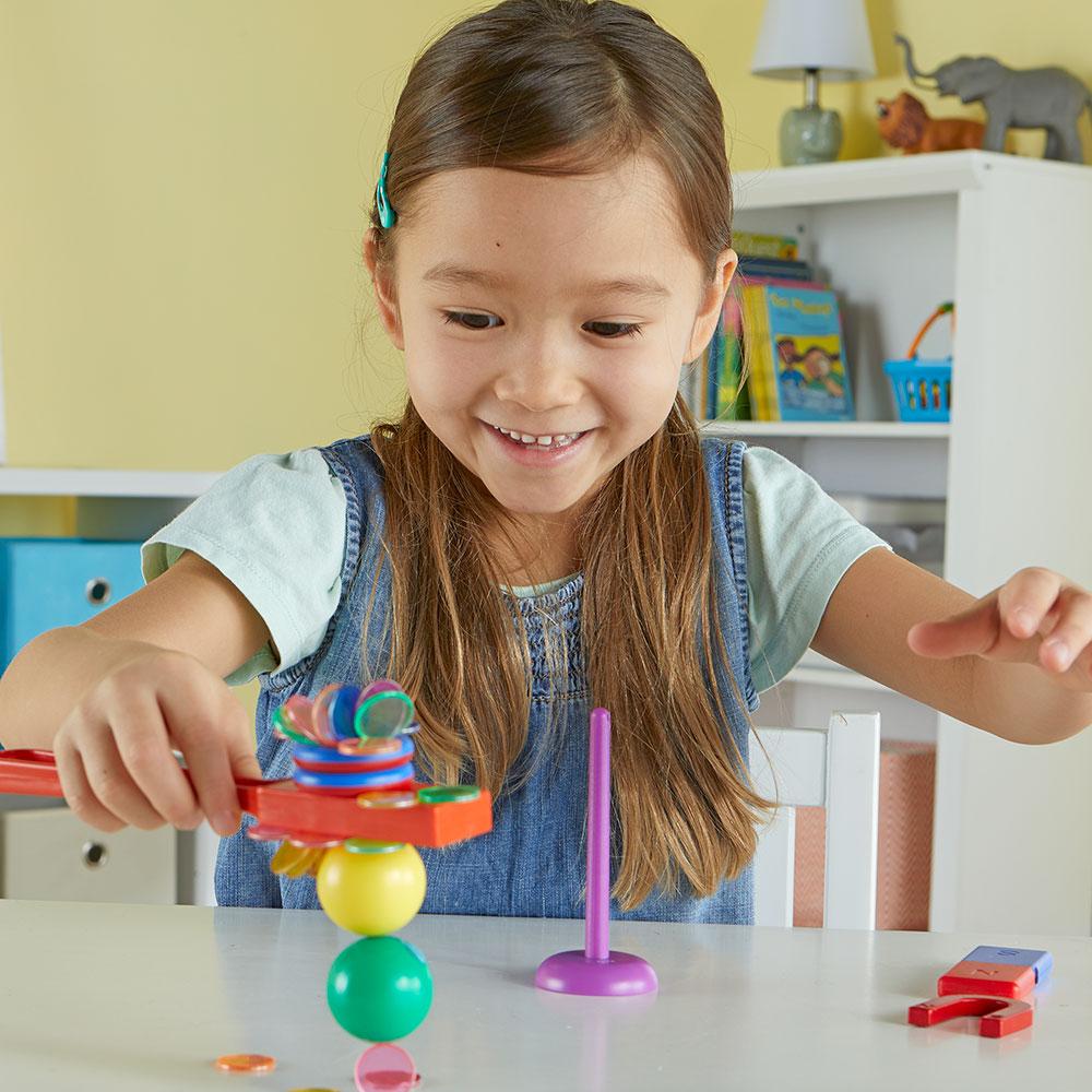 Kids experiment with the motion of magnetic attraction during STEM-filled play sessions with Magnet Movers, one of the hands-on STEM Explorers activity sets from Learning Resources.