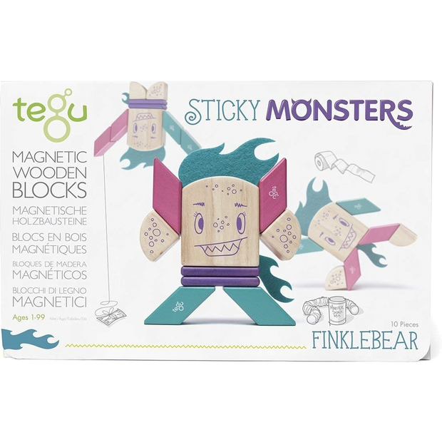 Tegu Sticky Monsters introduce a new way to play with magnetic wooden blocks. Finklebear is that rare character with an endearing personality and the heart of a mischief-maker. Her mission is to make people laugh, and if that means putting a whooppe cushion on an unsuspecting friends chair, so be it. Each Sticky Monster has its own unique personality and one-of-a-kind features, yet the all building components are compatible.