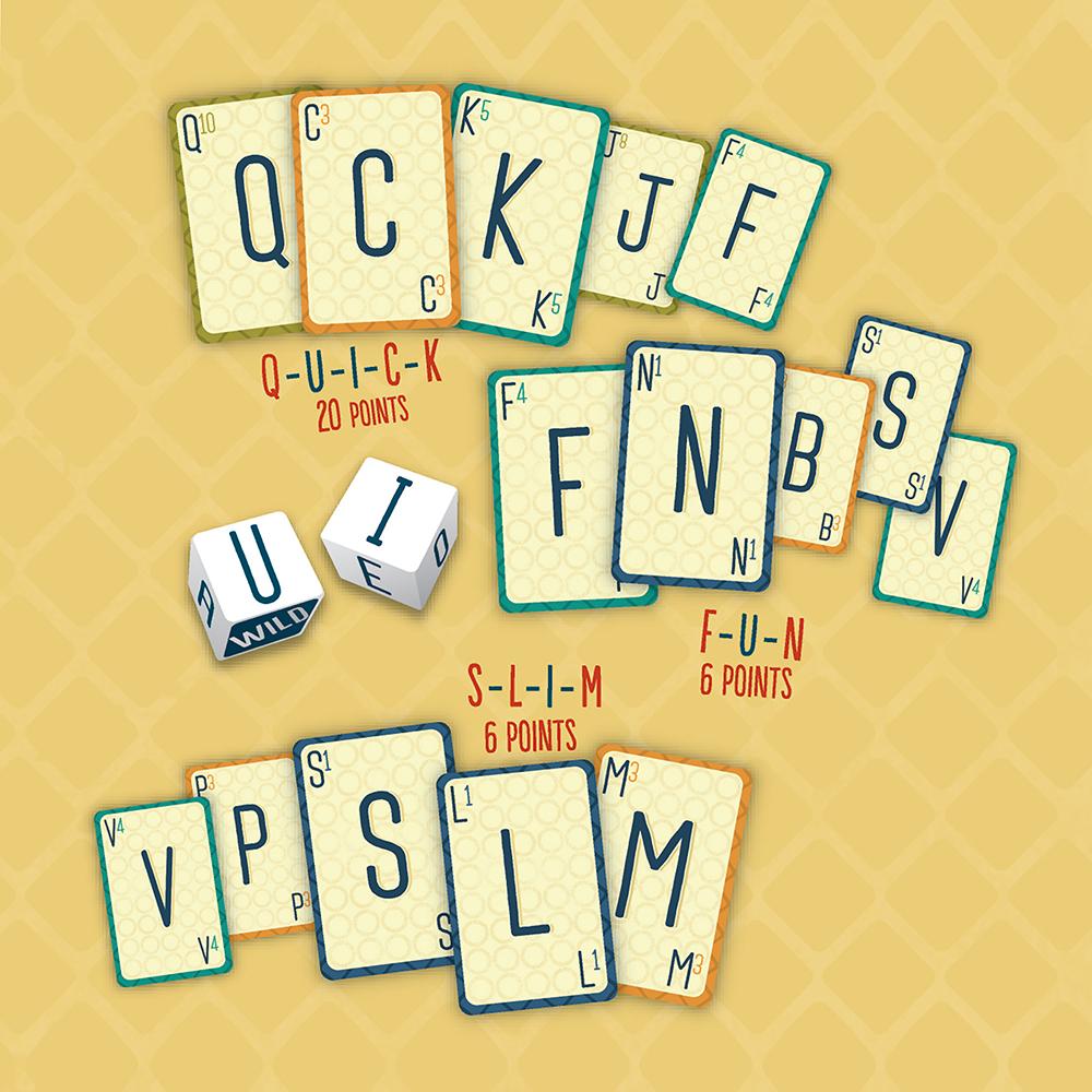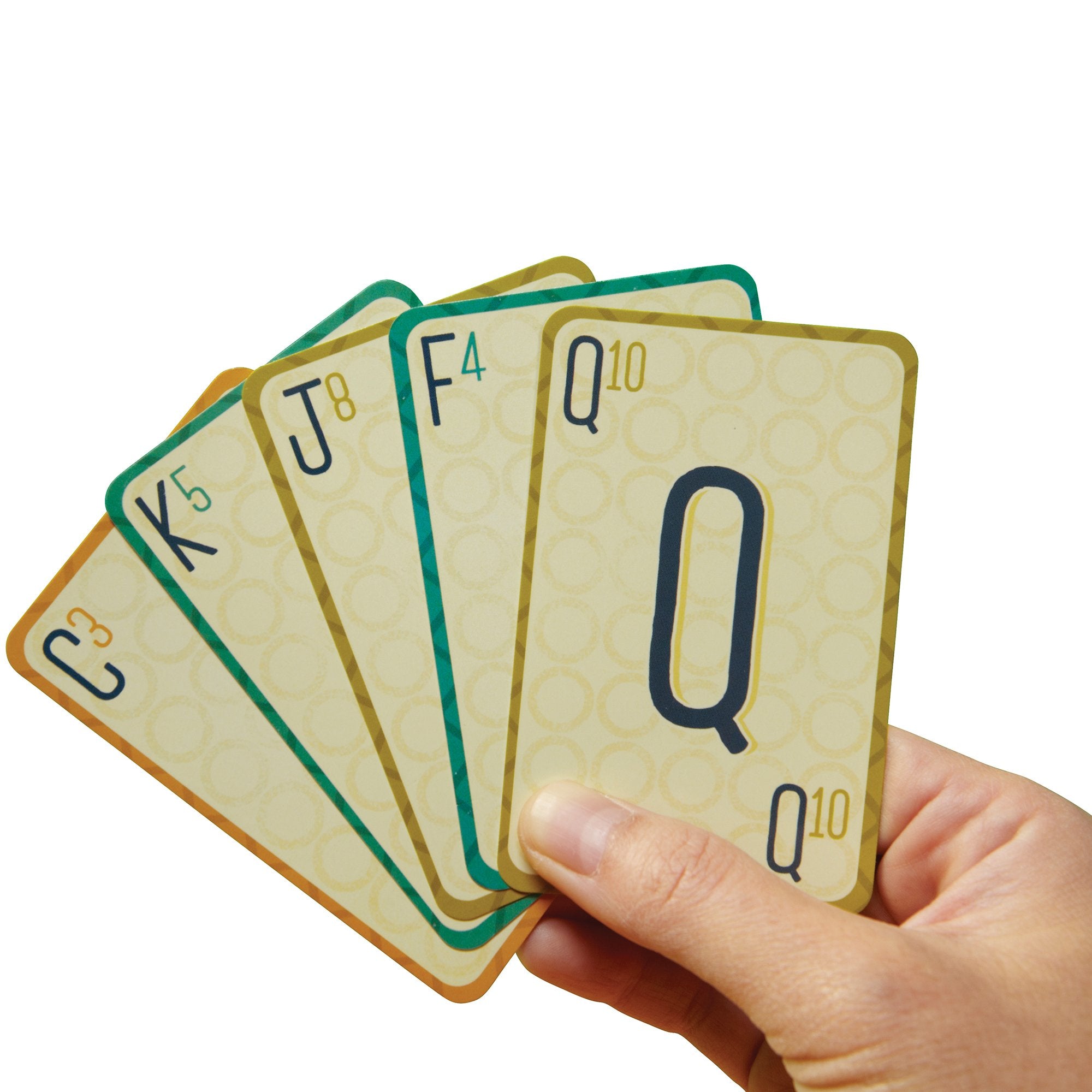 - All players race to build the highest-scoring word they can, using as many letters from their cards and the dice as possible.
